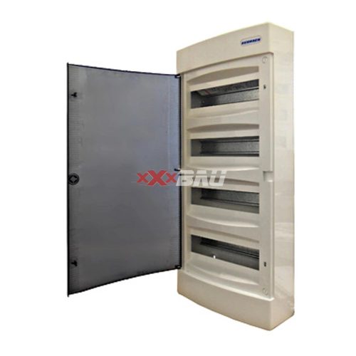 "Falonkívüli kiselosztó 4-soros, 48KE, átlátszó ajtó H=650 W=287 D=112mm, protection class 2, ABS, halogen free, RAL 9003"